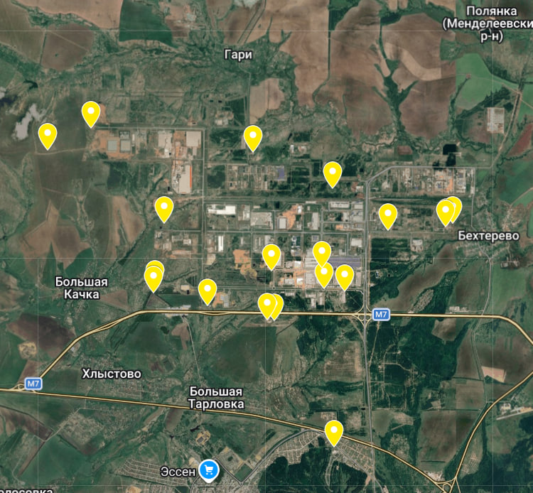 Також цікаво виглядає щільність "башт" під "Панцирі" навколо "Алабуги" як основної зони виробництва "Шахедів/Герань-2", якими ворог б’є по Україні.