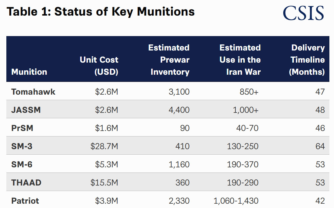 І за 39 діб війни США витратили за оцінками від 1060 до 1430 зенітних ракет PAC-3 (старі CRI та нові MSE) для перехоплення балістичних цілей. А до початку операції проти Ірану в арсеналах США було 2330 одиниць. Тобто витрата склала від 45% до 61% цих ракет.