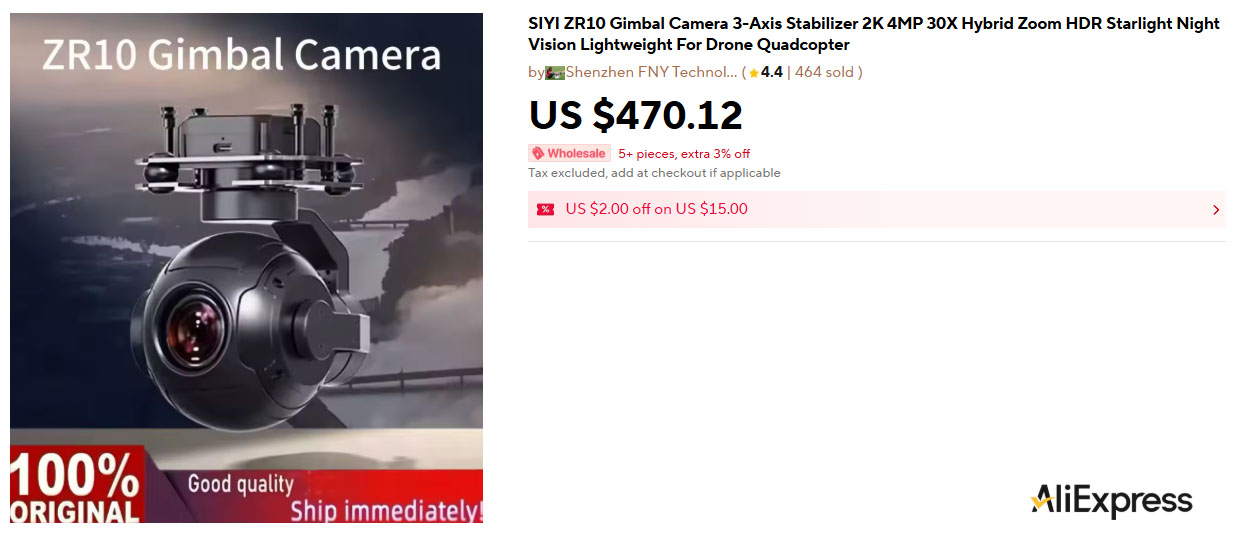 А з боку Defense Express зазначимо, що використання однакової конфігурації обладнання прямо вказує на те, що у РФ законтрактували велику кількість комплектуючих саме під ці розвідувальні дрони. Вочевидь викупивши у китайської SIY наявні та майбутні партії камер ZR10, які у роздріб коштують на китайських макретплейсах близько 500 доларів. Що означає, що при масовій оптовій закупівлі ціна буде нижчою.