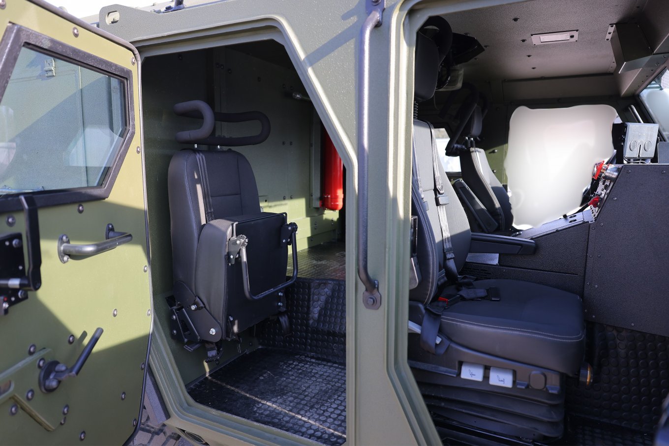 Для екіпажу та десанту залишилася бронекабіна, що вміщує до 5 бійців та має протимінний захист на рівні Level 3a/b за стандартом STANAG 4569, тобто витримує підрив 8 кг вибухівки під колесом чи днищем. При цьому використано нове рішення у вигляді підвісної підлоги, яке надалі буде масштабоване на інші серійні броньовики від "УкрАрмоТех" (так, на "Гюрзі-2" зараз реалізоване інше рішення - підлога зі спіненого алюмінію, яка гасить енергію вибухової хвилі при підриві під днищем). Зсередини капсула для екіпажу та десанту вкрита протиуламковим підбоєм з арамідної тканини.