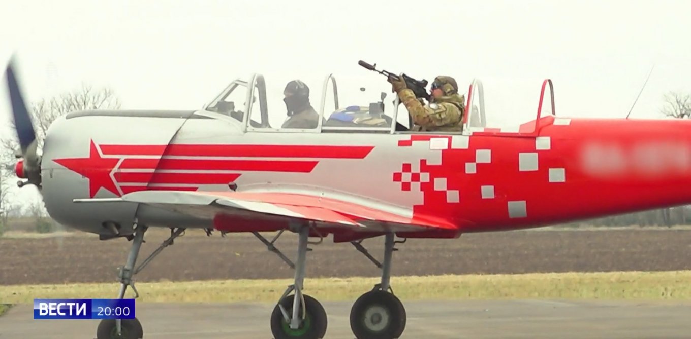 Зокрема у сюжеті, який вийшов у програмі "Вести" було показано вже відомий Як-52, серійний номер якого RA-1874G безуспішно намагались "заблюрити". У ньому, все в один в один, як на українських таких самих Як-52 - пілот підводить літак до БПЛА, а стрілець зі штурмової гвинтівки намагається його збити.