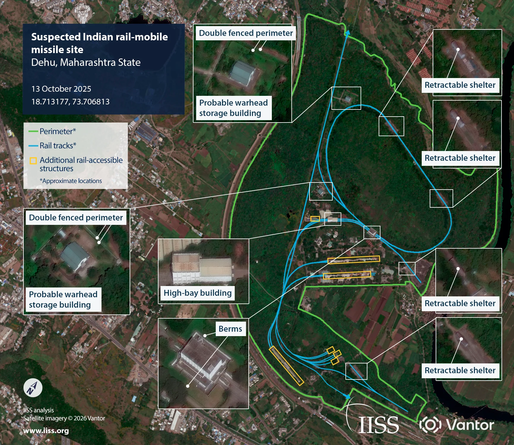 На основі аналізу супутникових знімків автори IISS виявили мінімум два об’єкти, де можуть базуватись ракети Agni-P на залізничному ходу. Перший із них – в Деху, за 700 кілометрів від кордону з Пакистаном, другий – в Міссі, біля кордону з Китаєм.